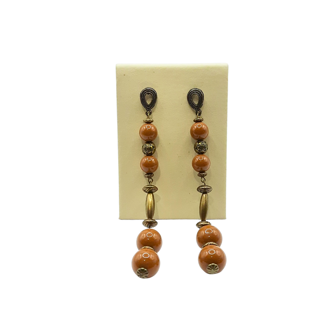 Em tons terrosos e com detalhes em dourado o Brinco Jamila deixa seu look mais exclusivo com muito estilo. A peça é leve e delicada, podendo ser usada em diversas combinações.