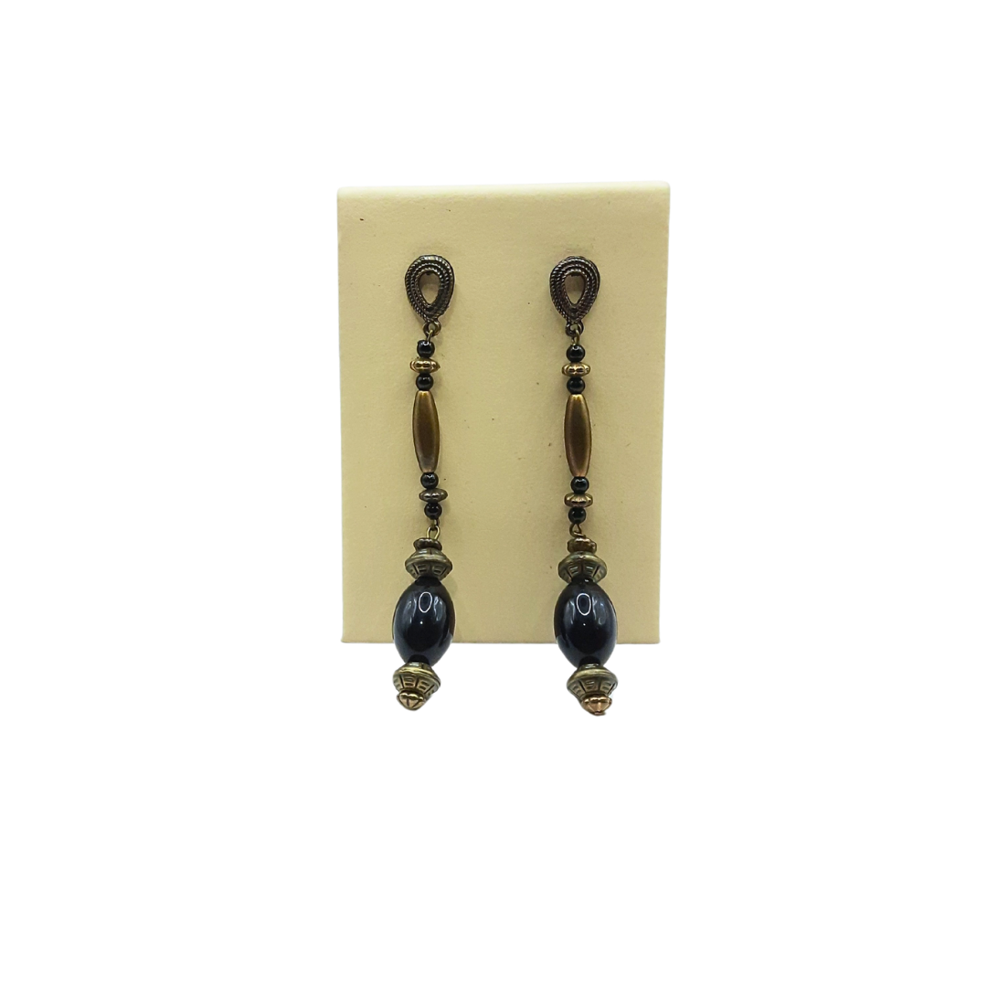 O Brinco Noite na Urbe combina o brilho do dourado com a elegância do preto para deixar seu visual deslumbrante.
