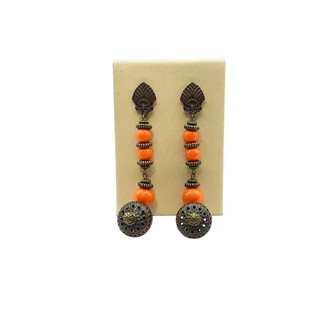 Com design original o Brinco Núbia mescla metal envelhecido com laranja deixando seu visual impactante. Super exclusivo com brilho único e charmoso o brinco torna sua produção ainda mais interessante. Com requinte e elegância você vai marcar presença em diversas ocasiões.