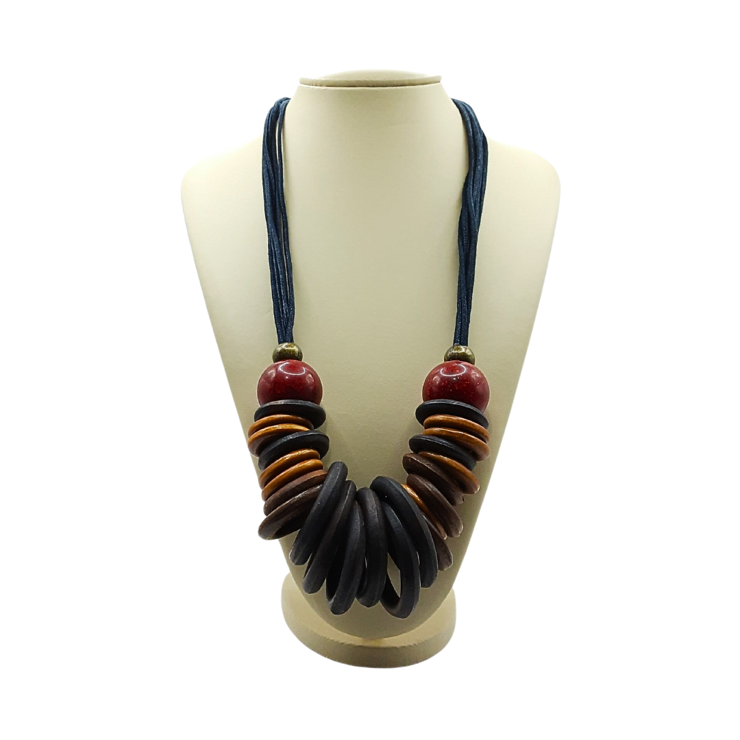 O Colar Ashanti deixa seu visual poderoso e impactante. Os tons terrosos dispostos num design original e criativo fazem do colar um acessório especial em qualquer produção. Uma peça com estilo único que agrega personalidade ao look do dia.
