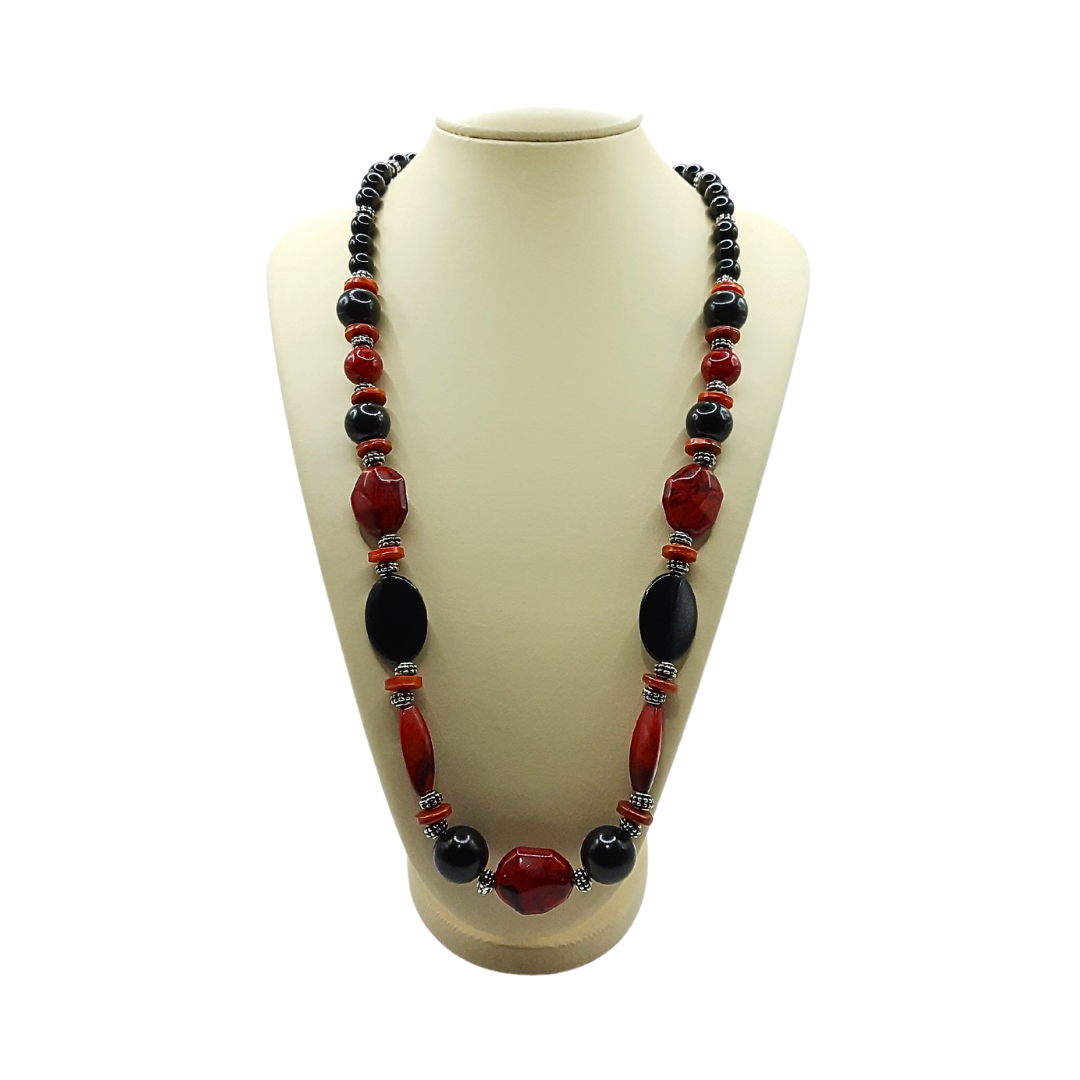 Com peças e vermelhas com entremeio prata o Colar Música Urbana valoriza sua produção com muito estilo e originalidade.