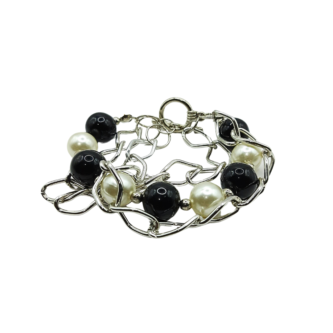 Confeccionada com pérola, bola preta e corrente prateada, a Pulseira La Délicatesse é indicada para mulheres delicadas e sutis.