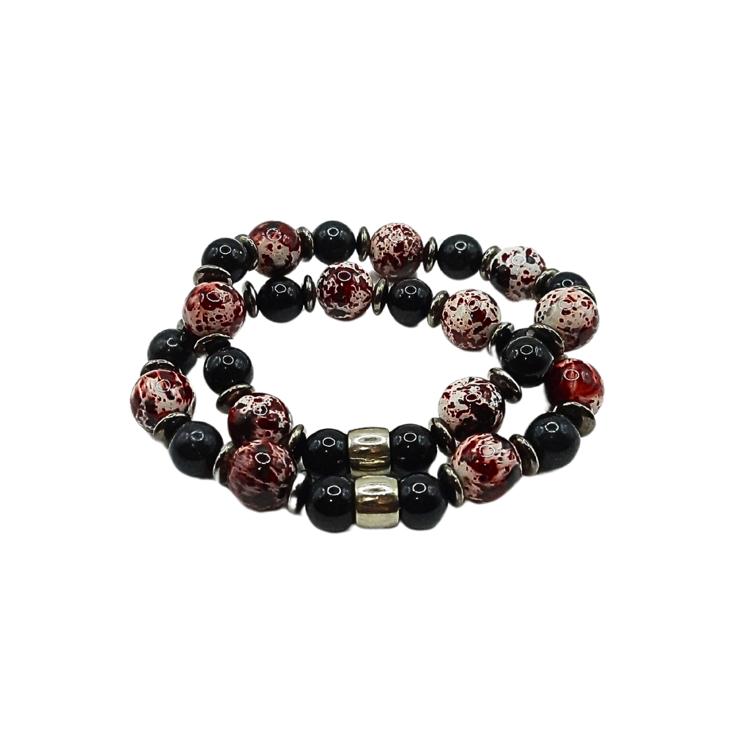 O duo de Pulseiras Gemini combinando preto com vermelho dá destaque à produções do dia-a-dia em qualquer ocasião. O prata aparece pontuações que complementam seu elegante mix de cores traz um toque especial. Cheia de estilo e originalidade tem uma pegada fashion especial perfeita para te valorizar.