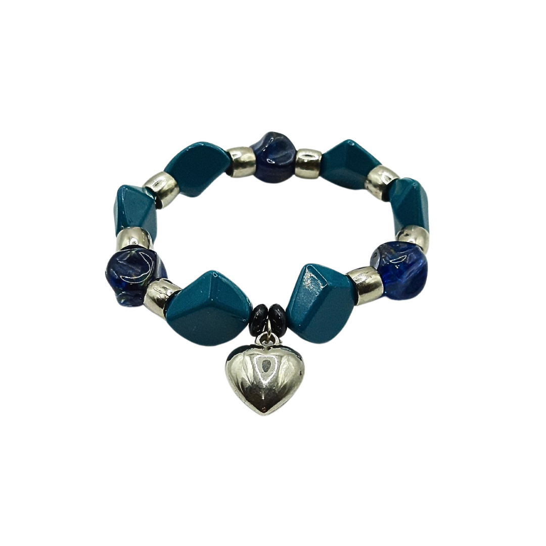 A Pulseira Keepsake confeccionada com em tons de azul com pingente coração prata é indicada para mulheres que guardam a lembrança de um amor que se foi.